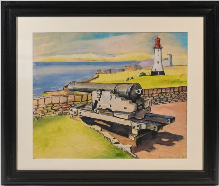 Robert Lenkiewicz (1941-2002) 'Cannon on the Hoe' watercolour, signed and dated '70, 30cm x 36.5cm, framed and glazed.