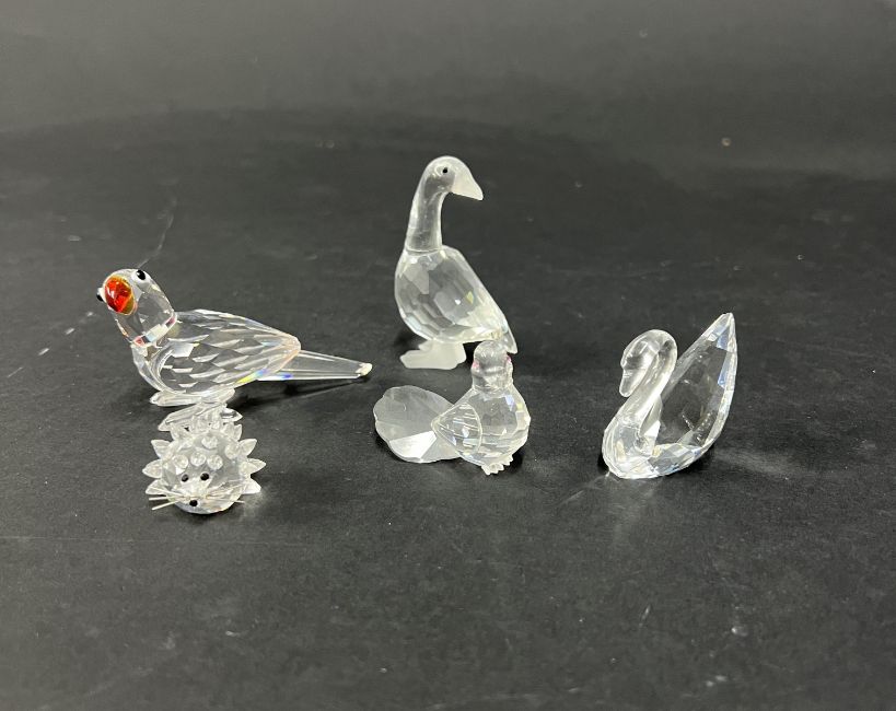 Swarovski Crystal Glass, a small collection of five pieces including Parrot, Dove etc, boxed.