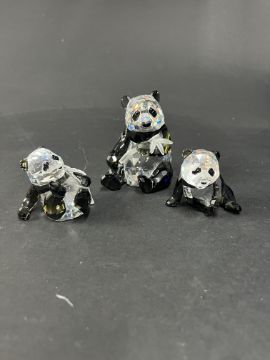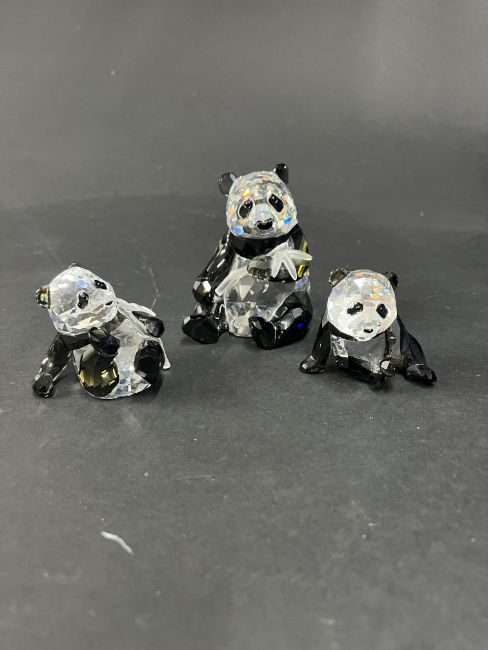 Swarovski Crystal Glass, 'Endangered Wildlife - Pandas with Panda Cub', boxed.