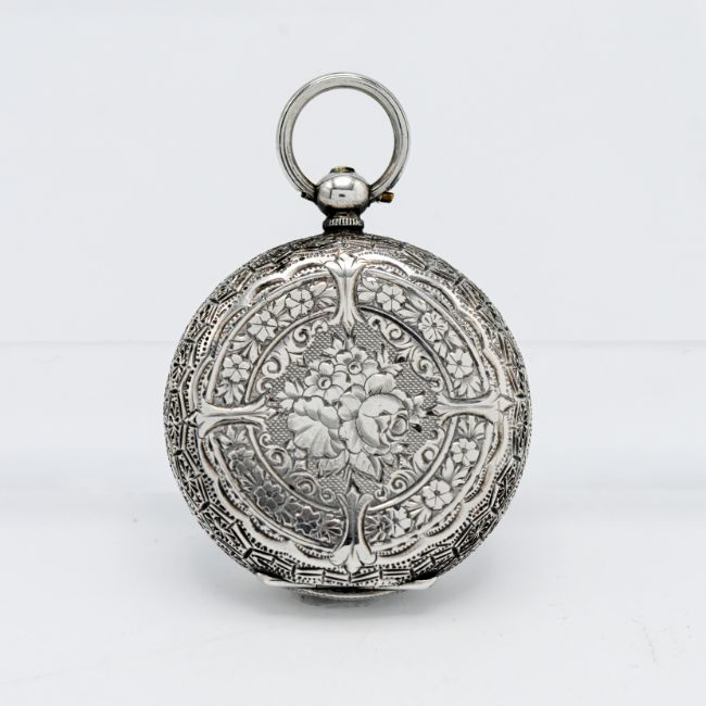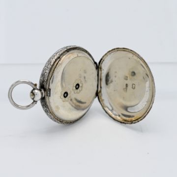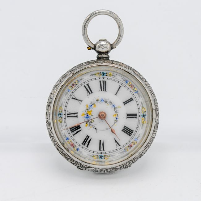 A Victorian silver, pretty enamel fob watch with key wind movement (marked F.M)