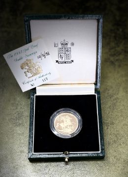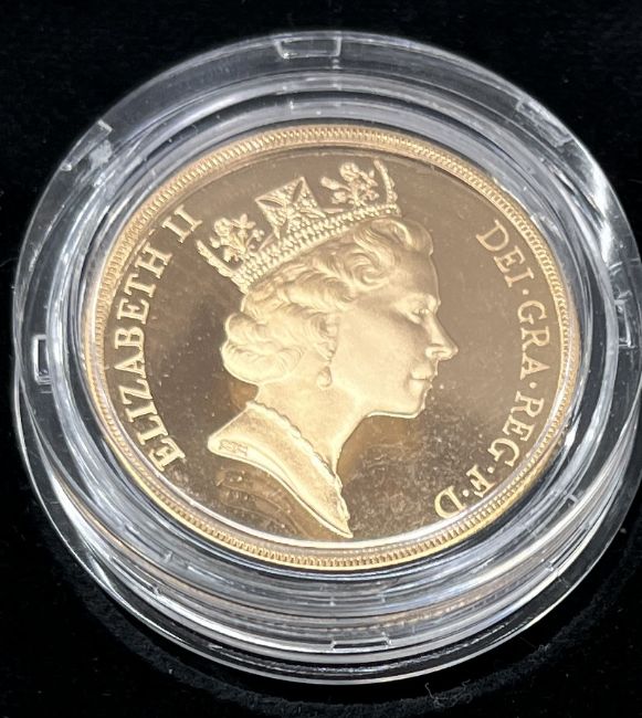 Royal Mint, a UK proof QEII double sovereign dated 1993 with certificate number 117, 15.98g, in capsule and original box.