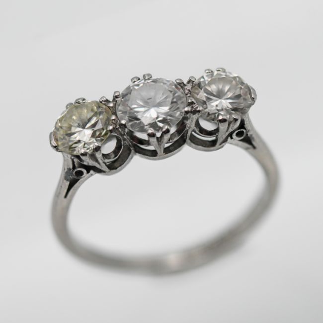 A good diamond three stone ring set in platinum, approx. 1.75ct, size N.