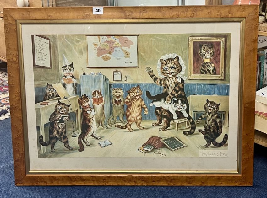 Louis Wain, print The Naughty Puss, created in 1988, framed and glazed, overall size 77cm x 58cm