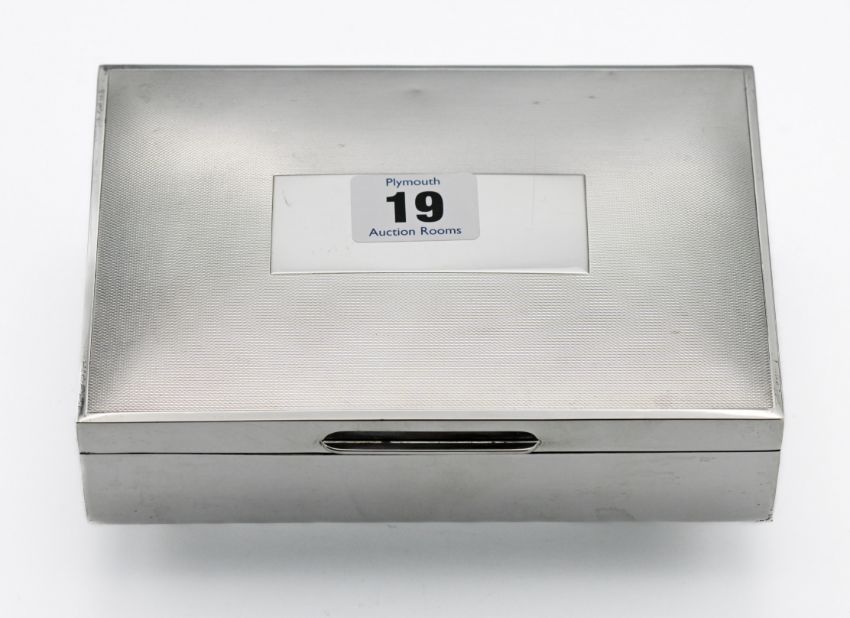 A silver cigarette box, 16.5cm x 11cm x 4cm, marked Kemp Brothers of Bristol.