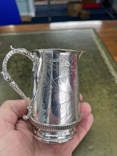 A Victorian silver cream jug, Sheffield, decorated with bird, butterfly and ferns, approx 5.94oz.