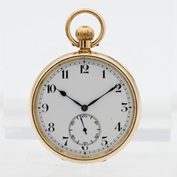 An 18ct open face and keyless Pocket Watch, the dial with Arabic numerals and subsidiary second dial, movement stamped 'Berne 1914, Grand Prix'.