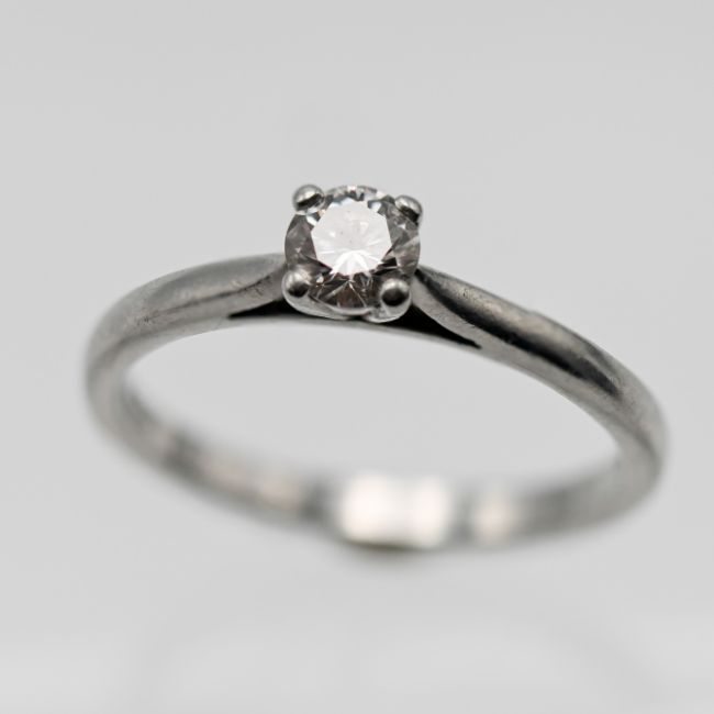 A diamond engagement ring, one modern brilliant cut diamond 0.34ct, colour D, platinum four claw mount, size N, with certificate.