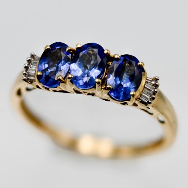 An 18ct diamond and tanzanite ring, size O/P.