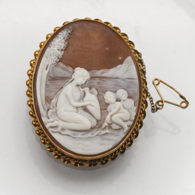 A 9ct gold cameo brooch, 50mm x 40mm.