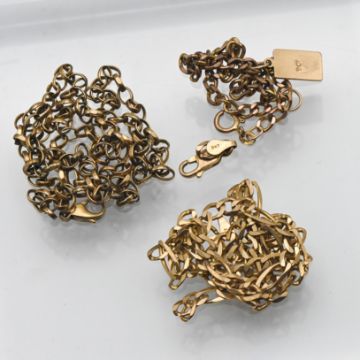 Two 9ct gold necklaces and a 9ct gold bracelet with pendant, approx 24.5g.