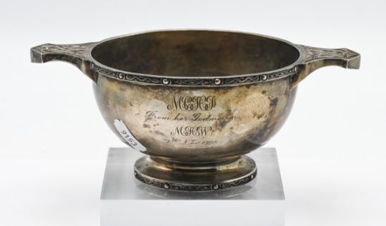 A silver quaich with stylised beast handles, hallmarked London 1927, silver weight 8.2oz.