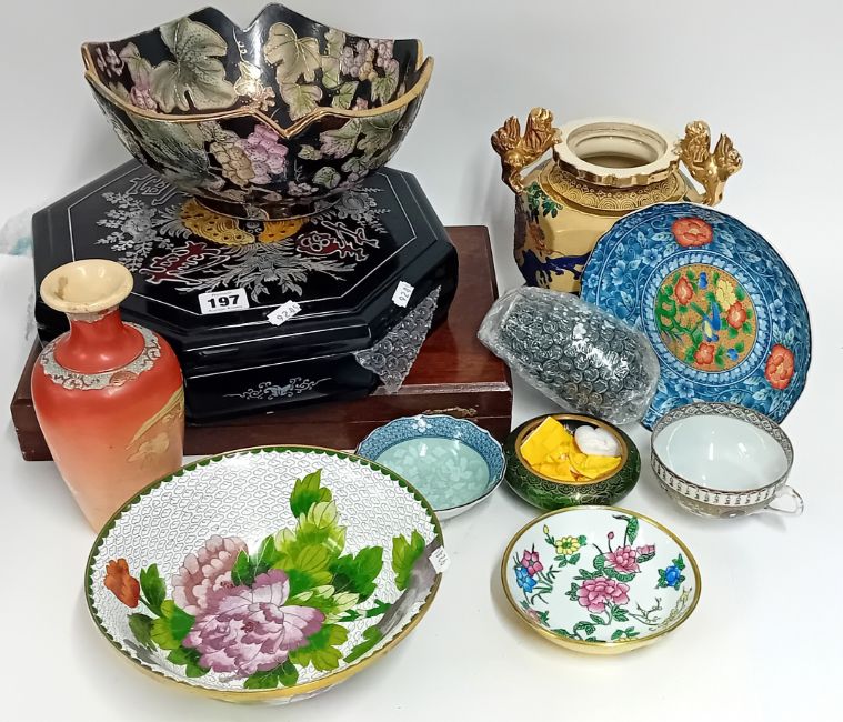 A quantity of mainly reproduction Chinese porcelain and other pieces, to include vases, metal canisters, a faux lacquer spice box, etc.