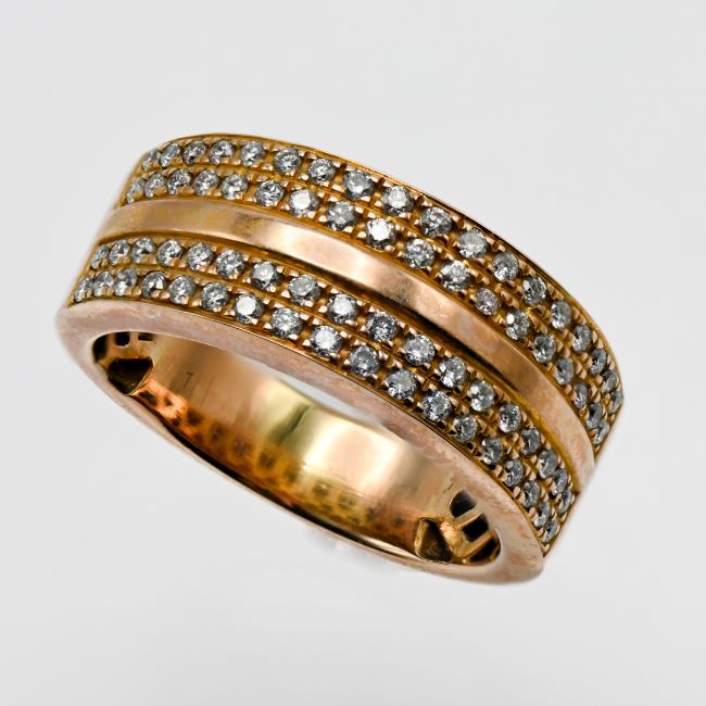 A rose gold two row diamond band ring, approx 6.63g, size I/J (not marked).