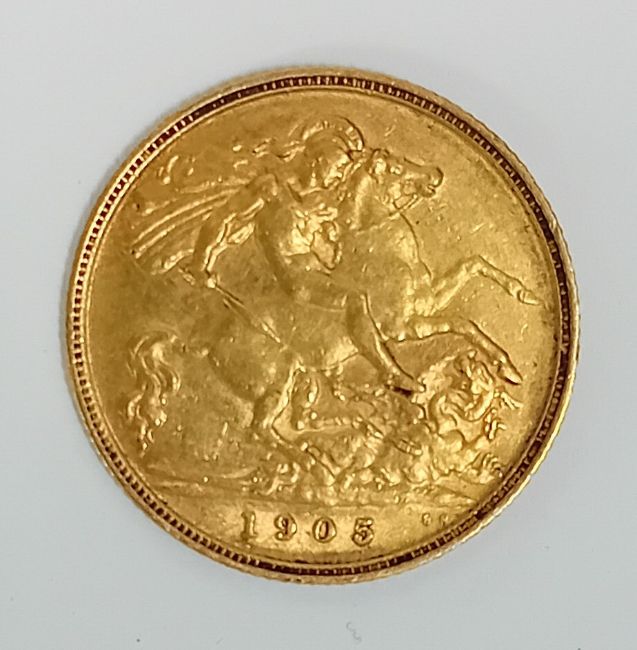 An Edward VII 1905 gold half Sovereign.