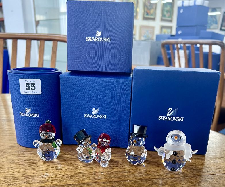 Swarovski Crystal Glass, a small mixed collection of Snowmen including 'Snowman Family', 'Snowman with Red Hat' etc, all boxed (4).