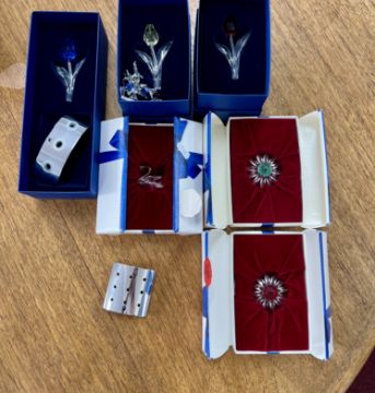Swarovski Crystal Glass, a mixed collection including Blue Tulip with stand, Red Tulip, Yellow Tulip, etc, all boxed.