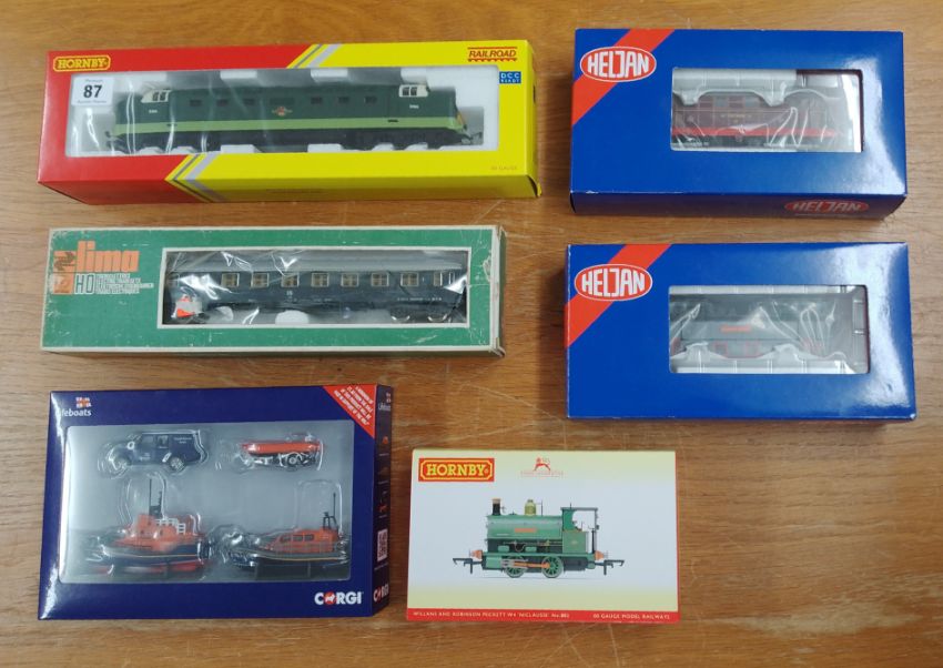 Hornby, 00 Gauge 'R3497 Diesel BR Class 55 No. 'D9016' locomotive, with 5 additional models, makes of Corgi, Hornby, Heljan, etc, boxed. (6)