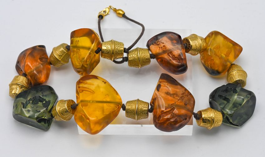 A large contemporary style chunky amber stone necklace.