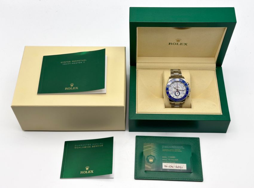 Rolex Yacht-Master II, a 2011 gents Oyster Perpetual, stainless steel, 44mm, automatic, date 16.04.2021, model 116680, serial 1E1H2269, box and papers and outer box, tag.