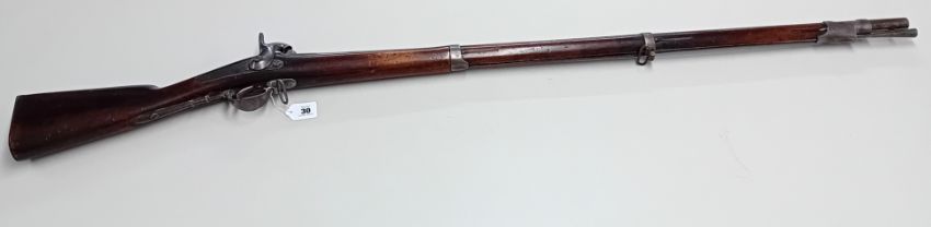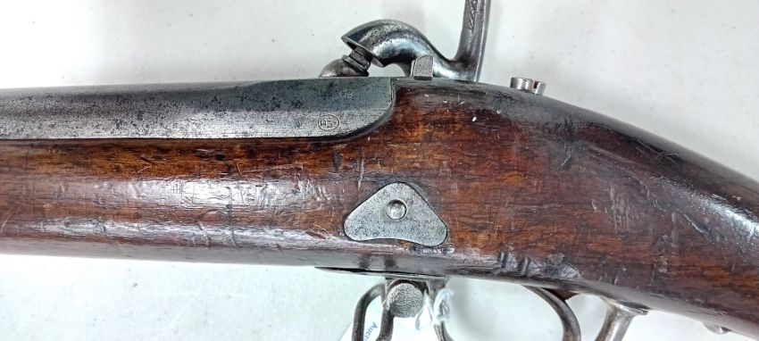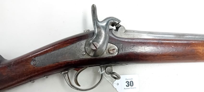 A c.1855 Belgian Percussion Rifle, with Liege proof mark, with fitted ramrod, length 142cm. Purchaser must be over the age of 18 and provide valid ID upon collection. Items will not be posted through Plymouth Auction Rooms.