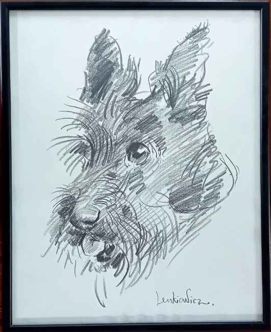 Robert Lenkiewicz (1941-2002), a graphite sketch of a Scottie dog, signed in pencil lower right, framed and glazed, overall size 32cm x 26cm.