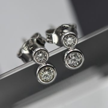 A pair of 18ct white gold diamond stud earrings each earring set with two stones.