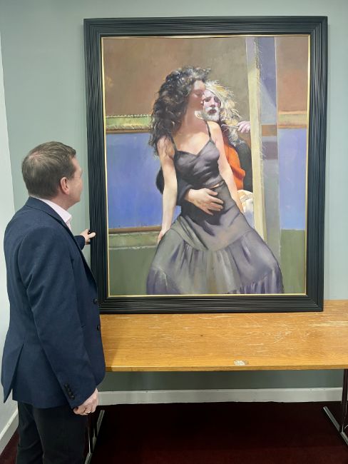 Robert Lenkiewicz (1941-2002), oil on canvas, 'Painter with Anna in the Studio', signed and inscribed verso by Anna Navas, framed, canvas size 152.5cm x 121cm, overall size 170cm x 138cm. Provenance: exhibited in 1994 by the Halcyon Gallery at the ICC Centre in Birmingham.