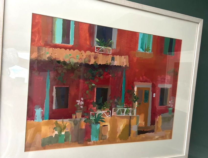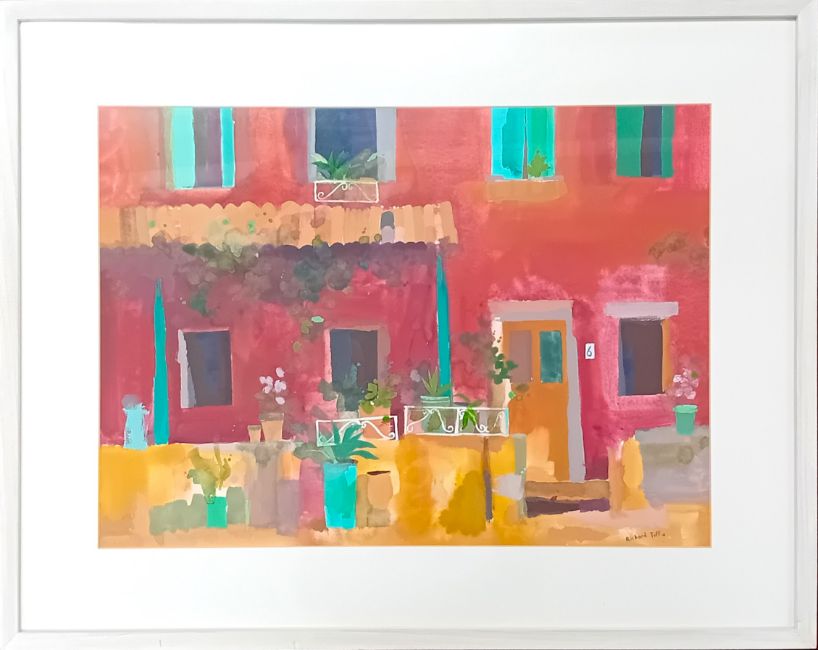 Richard Tuff (1965-), guache on paper, 'Shutters in the Afternoon Sun', Corfu, from his 'Ionion Summer' exhibition 2001, signed lower right, framed and glazed, overall size 66cm x 81cm.