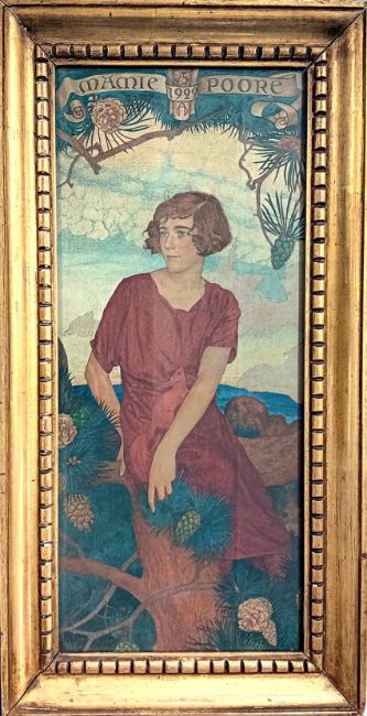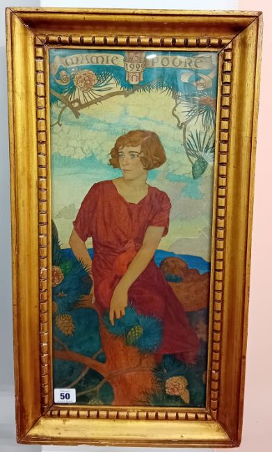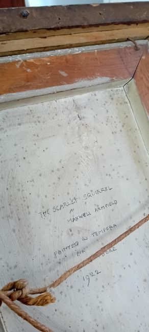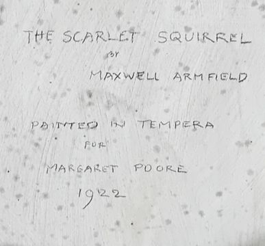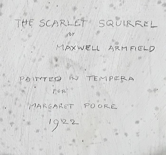Maxwell Ashby Armfield (British, 1881-1972), tempera on board, ‘The Scarlet Squirrel’, 1922, inscribed verso ‘The Scarlett Squirrel by Maxwell Armfield, painted in tempera for Margaret Poore 1922’, framed and glazed, overall size 60cm x 32cm.Maxwell Ashby Armfield was a leading figure in the Arts and Crafts Movement, using the medieval tradition of tempera paints.
