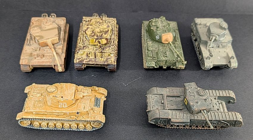 Corgi, 'M48 Tank' with 5 Corgi tanks, and 2 WWII plastic tanks, all unboxed. (8)
