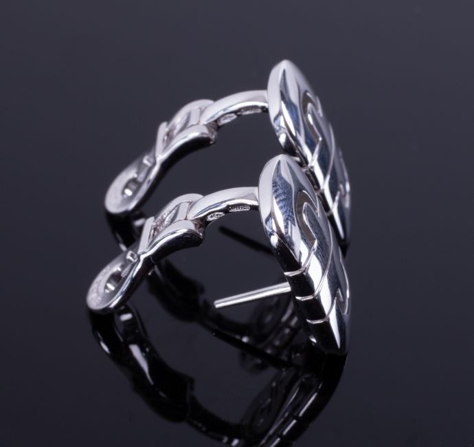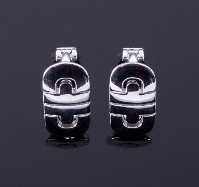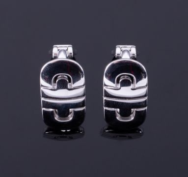 Bvlgari, a pair of contemporary style 18ct white gold Bvlgari earrings from their Parentesi collection, with post & safety clip fitting (for pierced ears), approx. length 2cm x width 1cm, 11.84gm, comes with original inner & outer boxes.