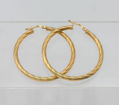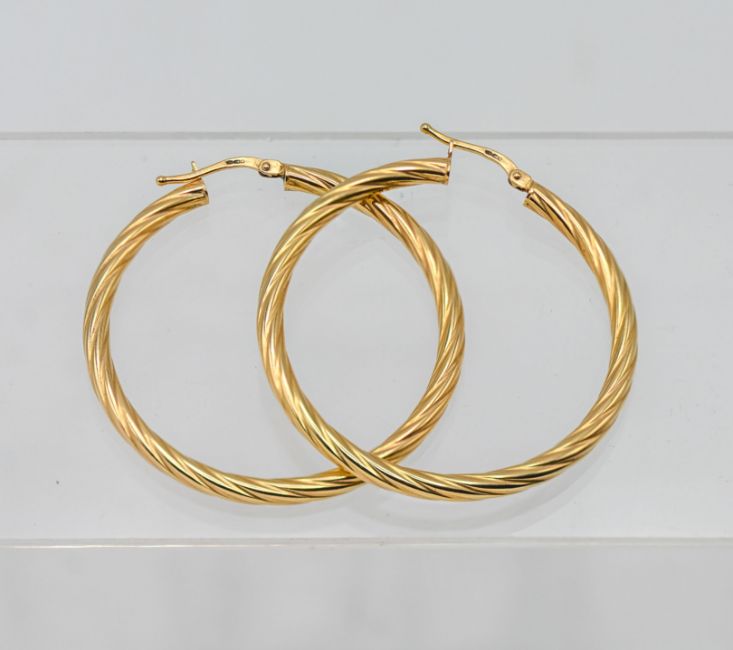 A large pair of 9ct yellow gold twist design hoop earrings, approx 2.84g