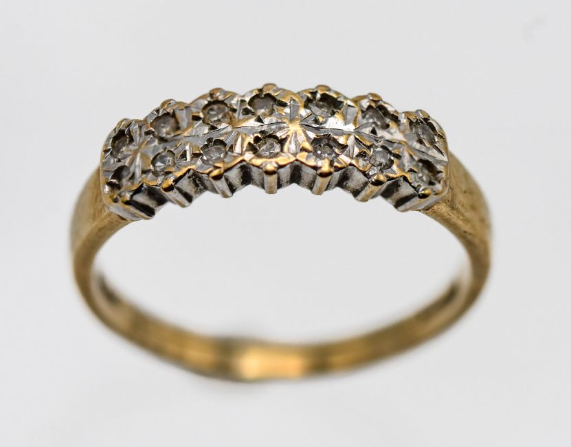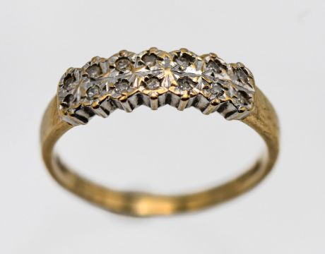 A double row diamond ring, set in 9ct gold, approx 2.1g, size O/P.