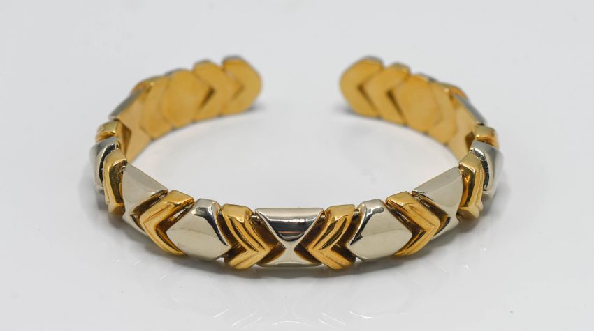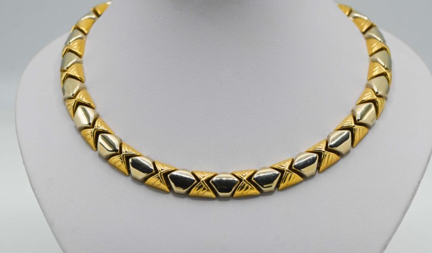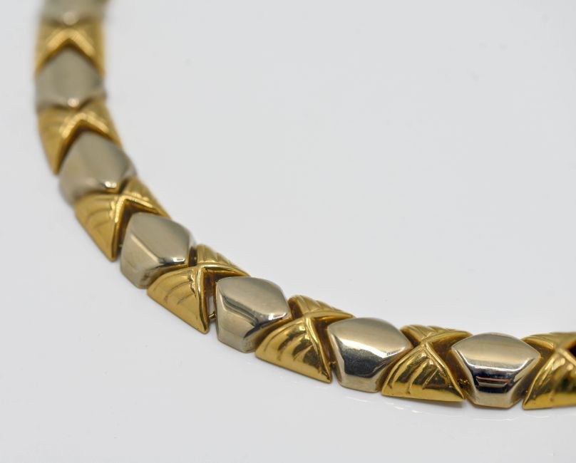 A fine18ct gold necklace and slave bangle to match (2), 111.70g.