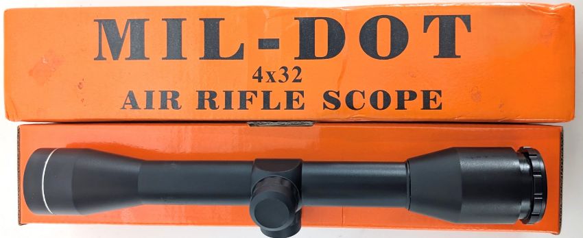 Mil-dot 4x32 air rifle scope, boxed. Purchaser must be over the age of 18 and provide valid ID upon collection. Items will not be posted through Plymouth Auction Rooms.