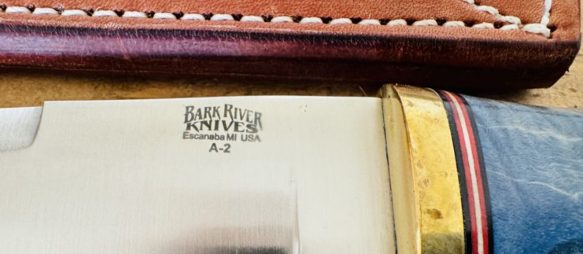 A Bark River knife, Arkansas Toothpick, blade length 23.5cm, leather scabbard.