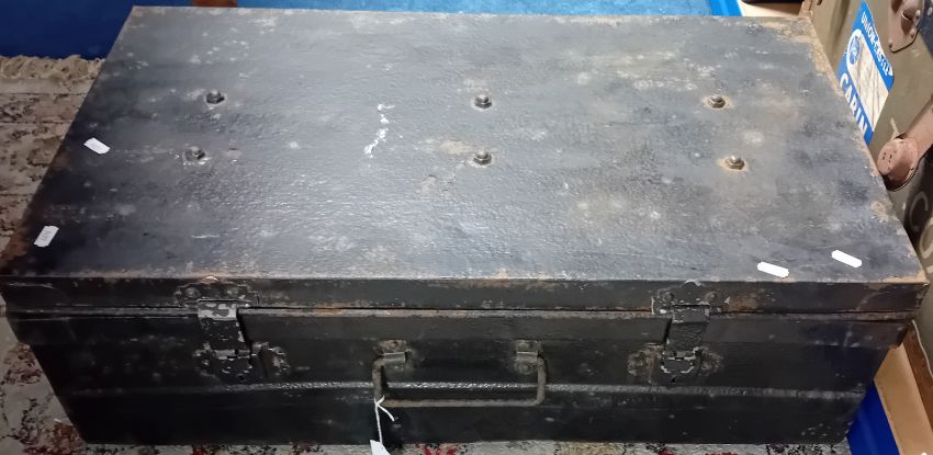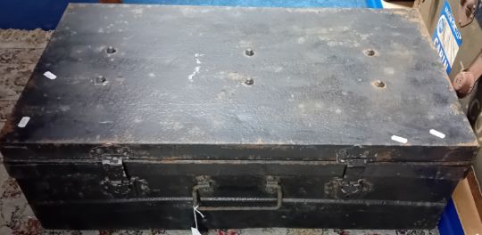 A large Second World War WWII uniform trunk, together with a leather suitcase and two metal trunks. (4)