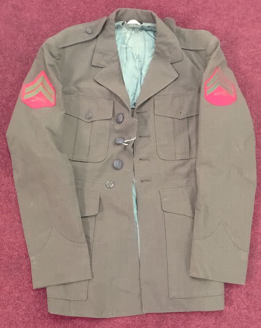 A US Marine Corps green jacket, with Marine Corps badges to arms.