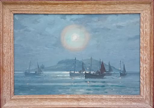 Charles Eddowes Turner (British, 1883-1965), oil on canvas, moonlight ships scene, signed 'C.E. Turner' lower right, subject size 23cm x 35cm, framed.