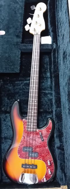 A Fender Precision Bass, Sunburst, S/N MZ 0165433, cased.