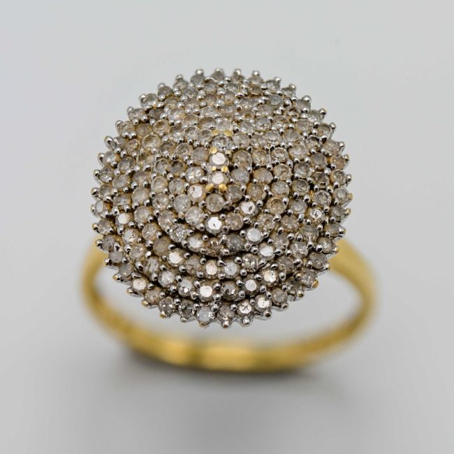 A diamond cluster ring, set in 18ct yellow gold, marked inside 1.22, size P, approx 6.3g.