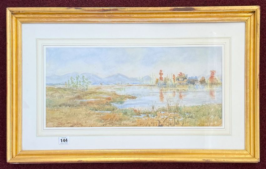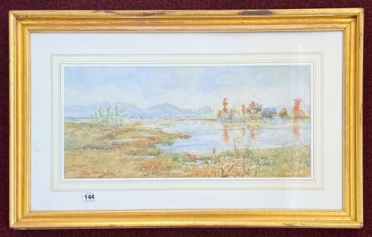 Marjorie Murray, watercolour possibly Indian scene, dated 1909, 24cm x 55cm, framed and glazed.