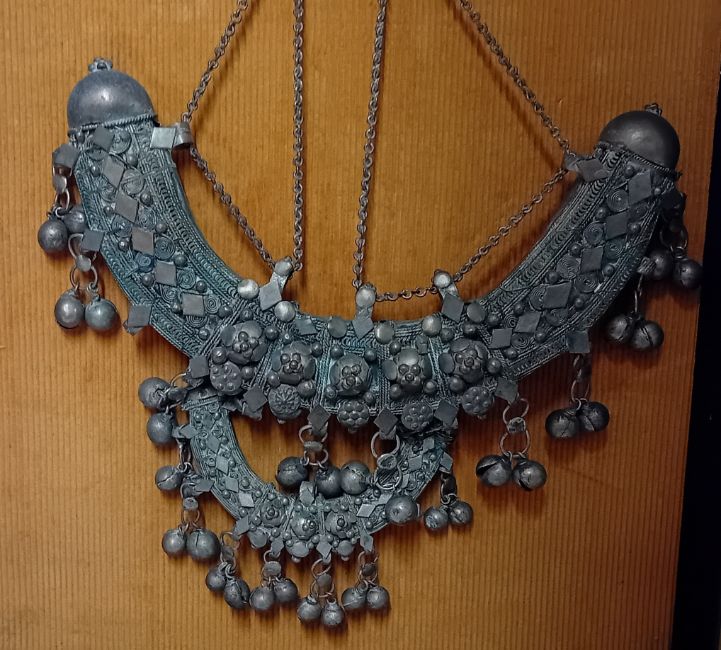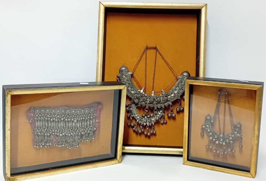 Three cased Ethiopian silver ceremonial wedding necklaces. (3)