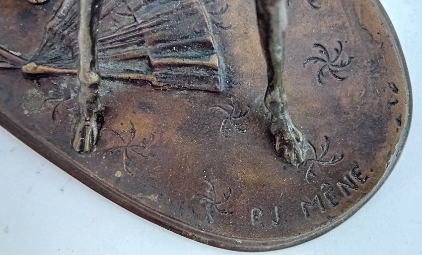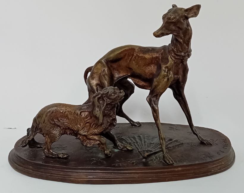 A spelter group by PJ Mene, of two dogs, signed to base.