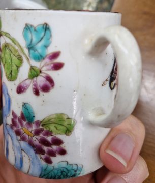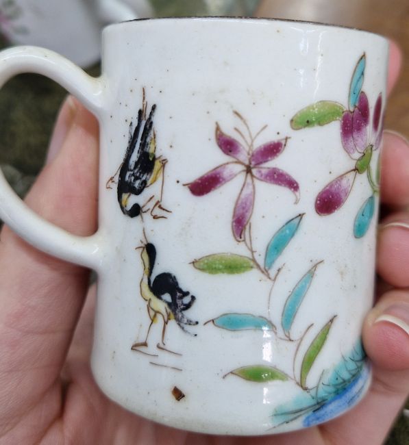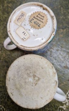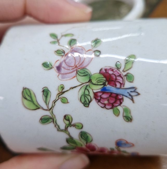 Two Bow factory cans, of polychrome floral design. (2)