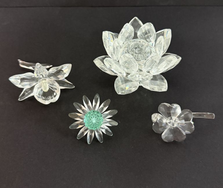 Swarovski Crystal Glass, Orchid, Waterlily - Candle holder etc, all boxed (green flower no box).