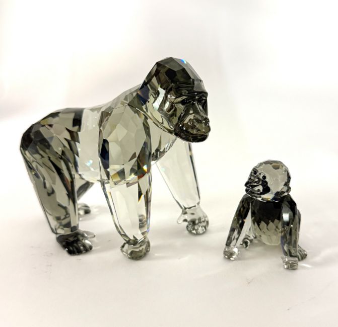 Swarovski Crystal Glass, Endangered Wildlife - Gorillas, boxed.
